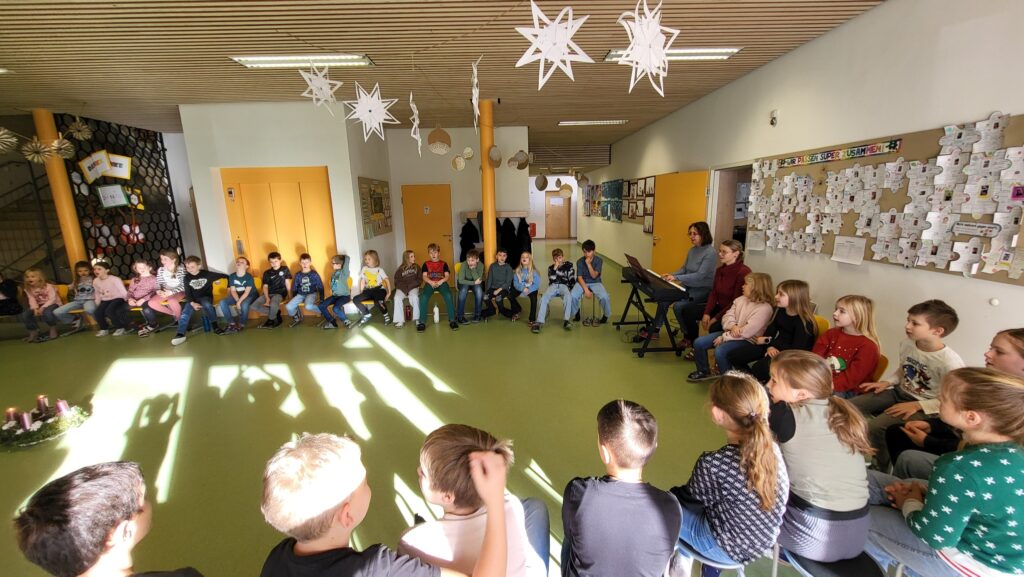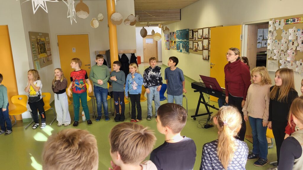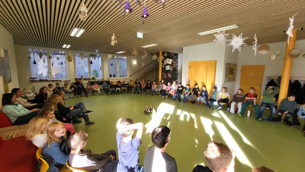 Die Adventzeit war an unserer Schule von vielen schönen gemeinsamen Momenten geprägt. Der Nikolausbesuch sorgte für leuchtende Augen und vorweihnachtliche Stimmung. Besonders stimmungsvoll war auch das gemeinsame Singen mit dem Kindergarten, bei dem Groß und Klein zusammenkamen.