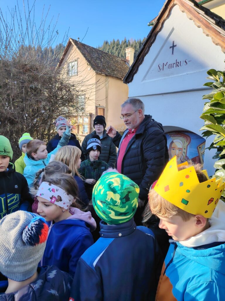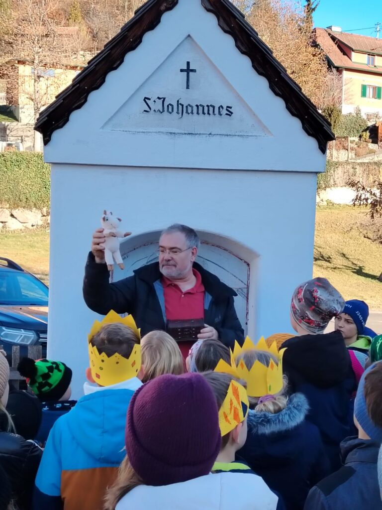 Herr Faustmann gestaltete traditionell wieder den Weihnachtsgottesdienst für Volksschule und Kindergarten.
